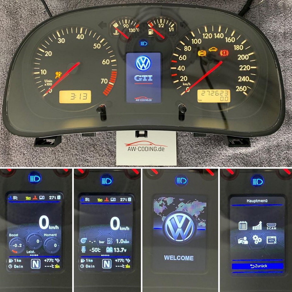 Tachoumbau aller Marken nach Kundenwunsch – z.B. Tachoscheibe, Zeiger, LEDs.